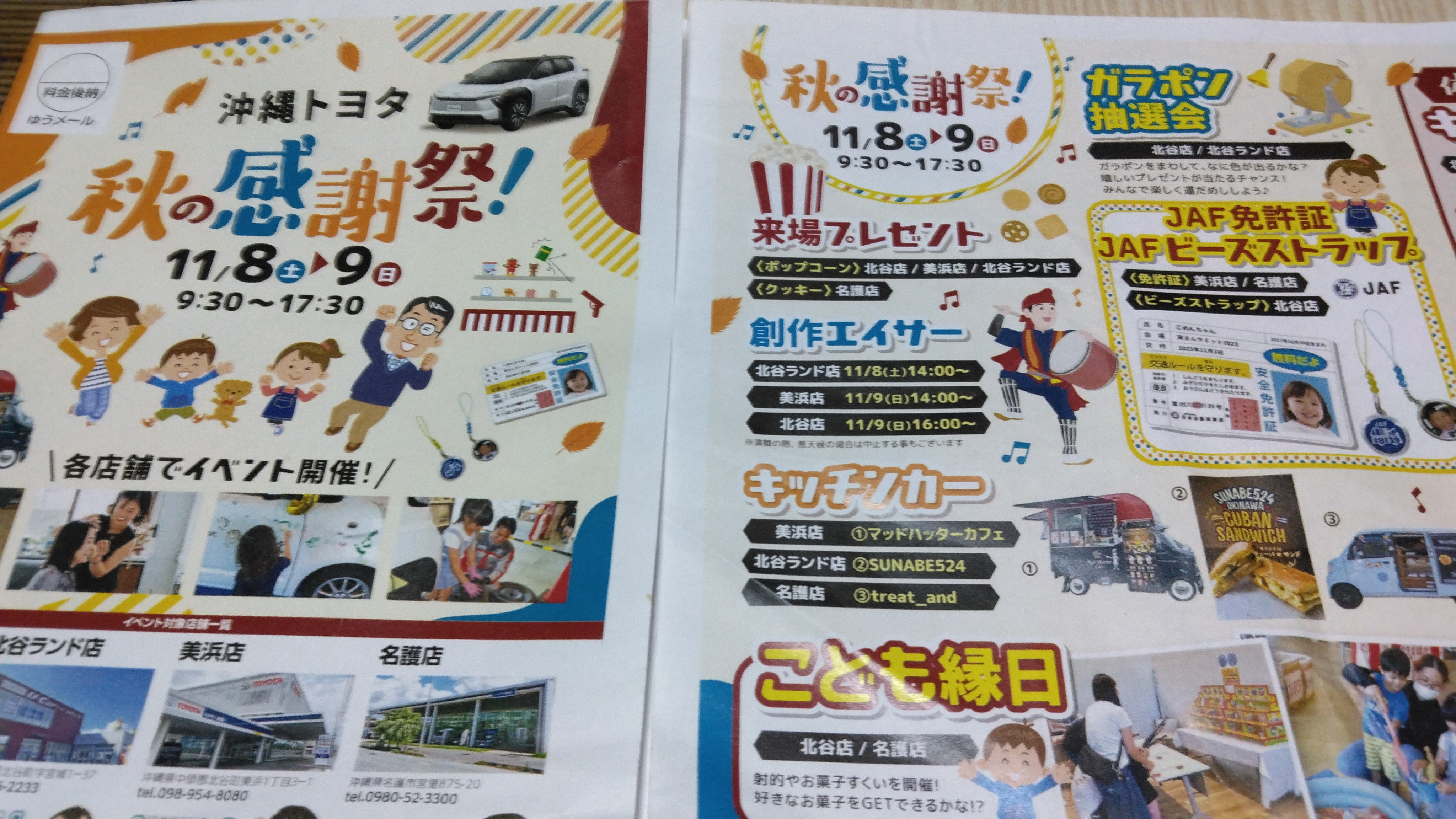 11/8、9の2日間沖縄トヨタ名護店にて出店致します!
